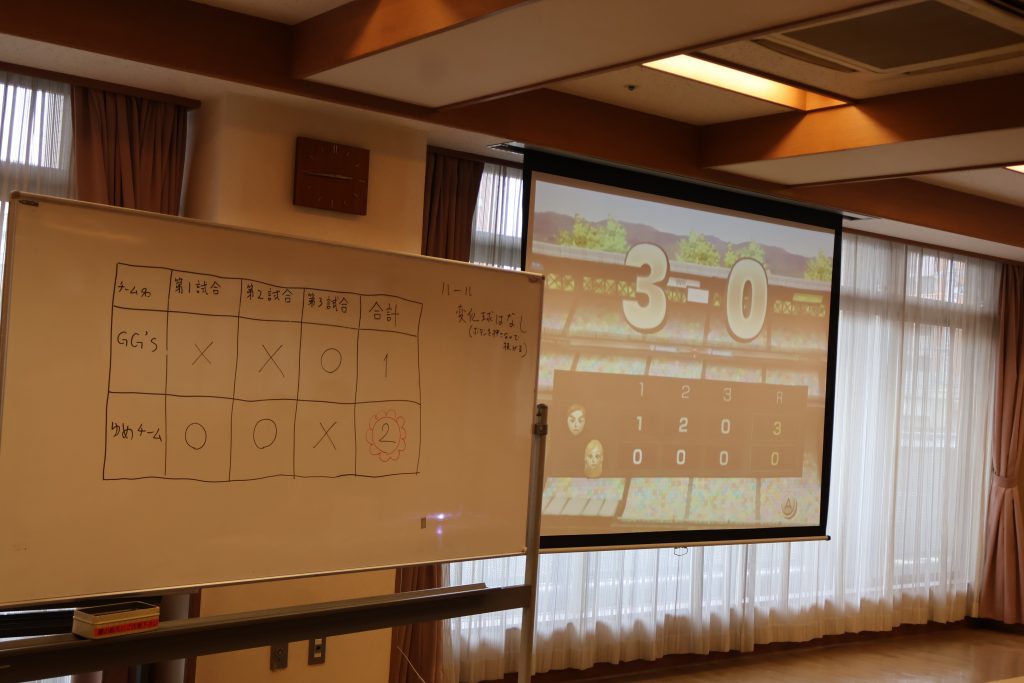お伺いした当日は、西区にある地域活動支援センター(作業所型)である「無限夢工房」の若いメンバーとのベースボールゲーム(Wiiスポーツ)対戦の日でした。コロナ禍を挟みながらも、毎年2月の恒例イベントとして続いているそうです。