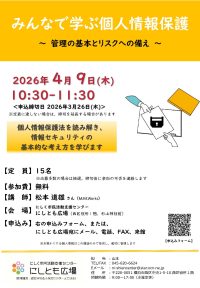 にしく市民活動支援センター”にしとも広場”(西区役所1階 杉山神社前)