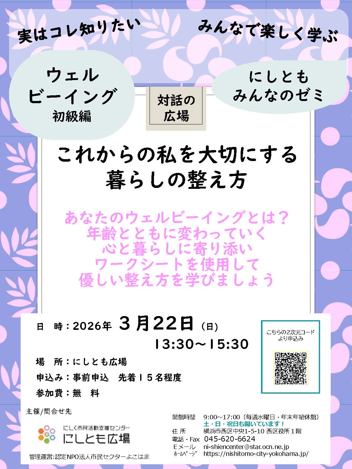 にしく市民活動支援センター ”にしとも広場” (区役所1階 杉山神社前)